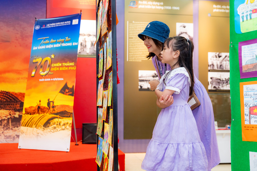 Hướng tới chào mừng kỷ niệm 70 năm Chiến thắng Điện Biên Phủ (7/5/1954-7/5/2024), thầy và trò trường Tiểu học Công nghệ Giáo dục Hà Nội (Alpha Schools - CGD) và Bảo tàng Phòng không - Không quân phối hợp tổ chức triển lãm đặc biệt: “Âm vang Điện Biên trong em”.