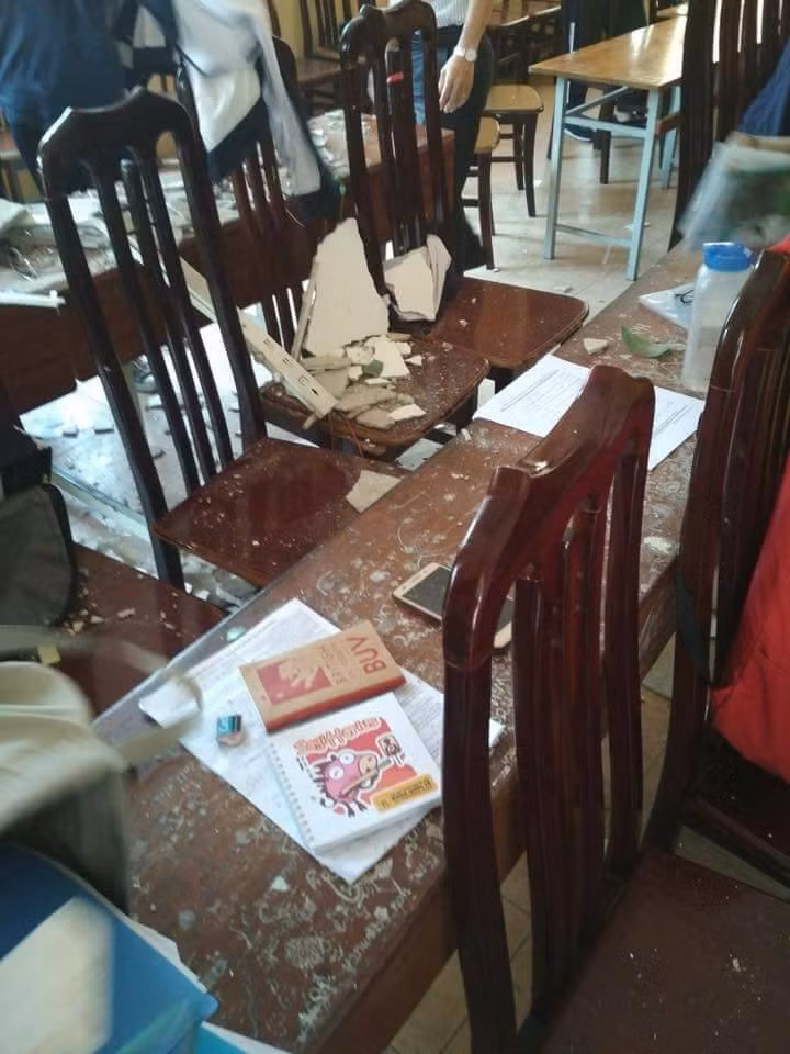 Trước đó, vào ngày 13/10/2017, cũng tại phòng học trên, một chiếc đèn và mảng vữa rơi vào bàn giáo viên, may mắn không gây thiệt hại do học sinh được nghỉ.