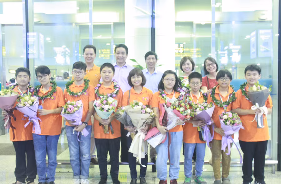 Một số hình ảnh thầy cô, phụ huynh Trường THCS Giảng Võ đón đoàn học sinh dự Festival Toán học quốc tế tại Bulgaria trở về: