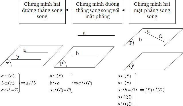 Để chứng minh đường thẳng a//b ta có thể sử dụng bốn cách chủ yếu sau: