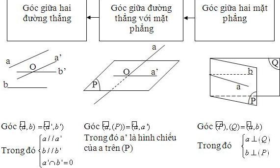 Bài toán về góc bao gồm xác định và tính: góc giữa hai đường thẳng, góc giữa đường thẳng với mặt phẳng, góc giữa hai mặt phẳng.
