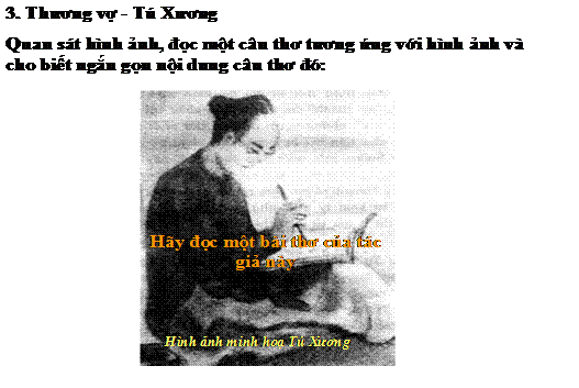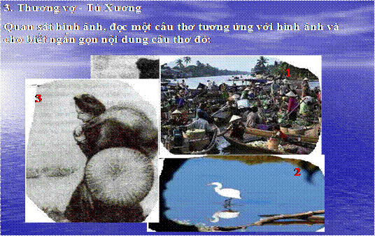 Giáo viên đưa ra yêu cầu, chia lớp thành ba đội, trả lời lần lượt trả lời câu hỏi đối với 3 hình ảnh. Đội 1 được trả lời trước, trả lời đúng hình ảnh sẽ mở ra.