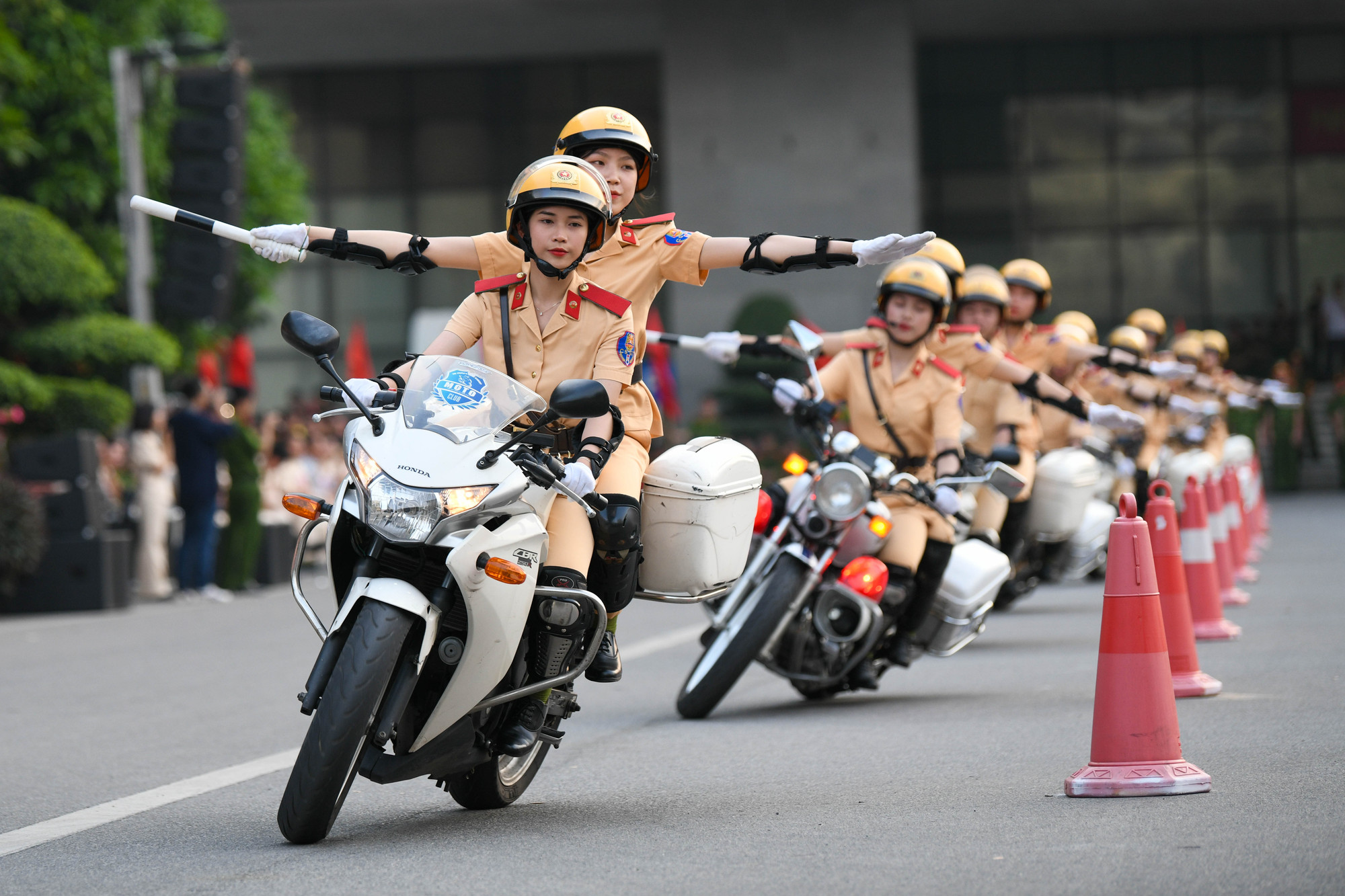 | Tiết đó là màn biểu diễn lái xe mô tô của cán bộ, học viên Học viện Cảnh sát nhân dân tại lễ kỷ niệm. |