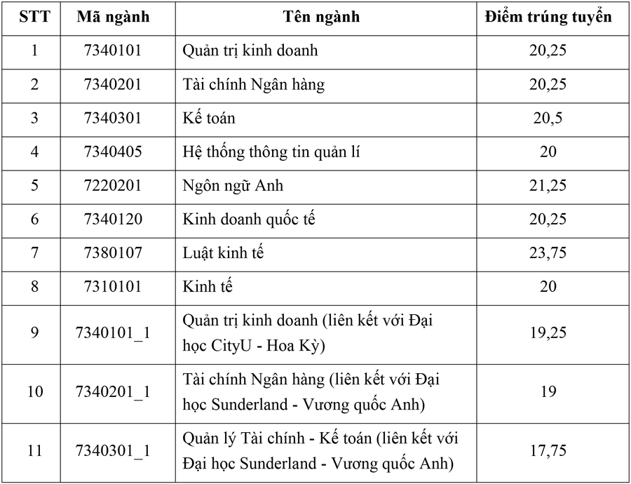 Điểm trúng tuyển đợt 1 Hệ đại học chính quy (Trụ sở chính tại Hà Nội):