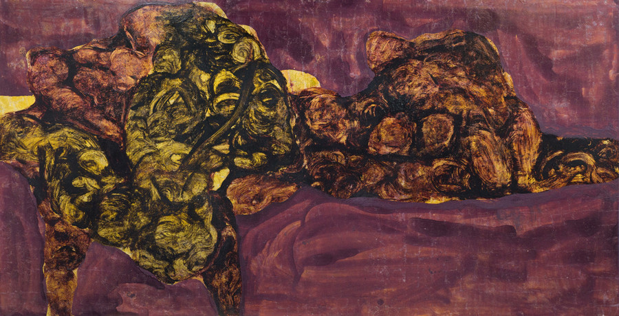 Cho đến những loạt tranh khổ lớn, có kịch tính, câu chuyện chỉ có cảm nhận thì rõ nhưng khó thuật lại bằng lời. Bằng hòa hợp như thế giữa họa và nhạc để xem tranh của Nguyễn Ngọc Phương, có thể thấy vẻ sang trọng, mãnh liệt, đậm đà muốn thoát đời của một con người du ngoạn từ khi còn trẻ. Sắc tranh khổ lớn giống như tường đền, miếu cổ, hoặc như vẩy, da của những loài vật huyền thoại.
