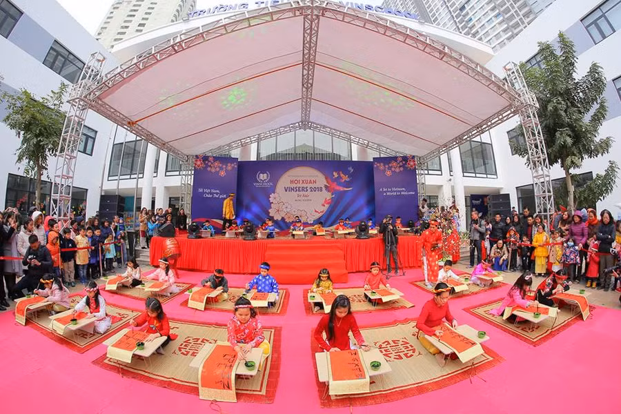 Nhằm giáo dục học sinh những nét đẹp văn hoá truyền thống của dân tộc, Hội thi Thư pháp “Vinsers vui câu đối Tết” đã được tổ chức để các em vừa trổ tài sáng tác câu đối, vừa thể hiện khả năng thư pháp của mình. Các ông đồ, bà đồ nhí trong chiếc áo dài truyền thống đã cùng nhau tái hiện lại một phần không khí náo nức của trường thi xưa cũng như tôn vinh tinh thần hiếu học của dân tộc Việt.