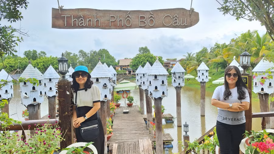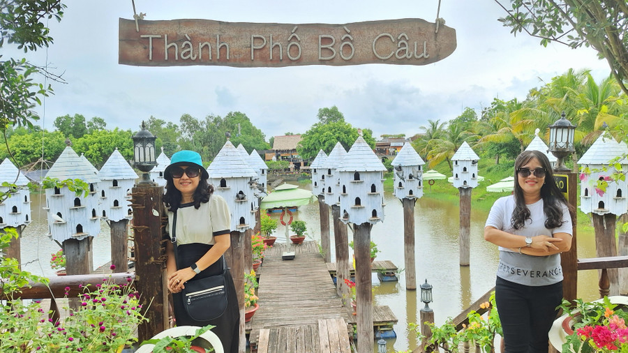 | Du khách đến Thành phố Bồ Câu tại Điểm du lịch Rừng tràm Trà Sư (Thị xã Tịnh Biên - An Giang). |