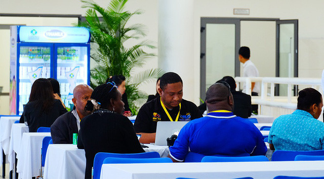 | Phóng viên báo chí trong nước và quốc tế thưởng thức các sảnphẩm của Vinamilk được phục vụ tại APEC 2017 |