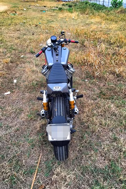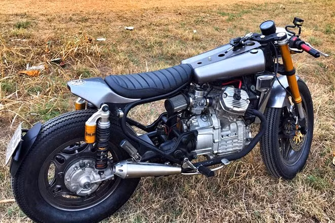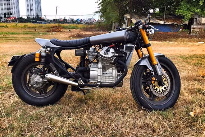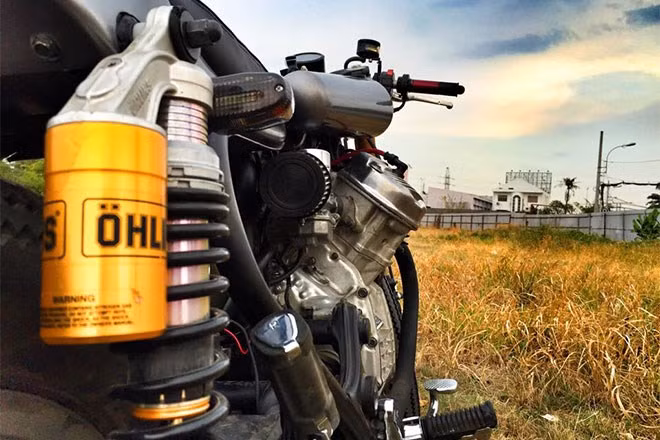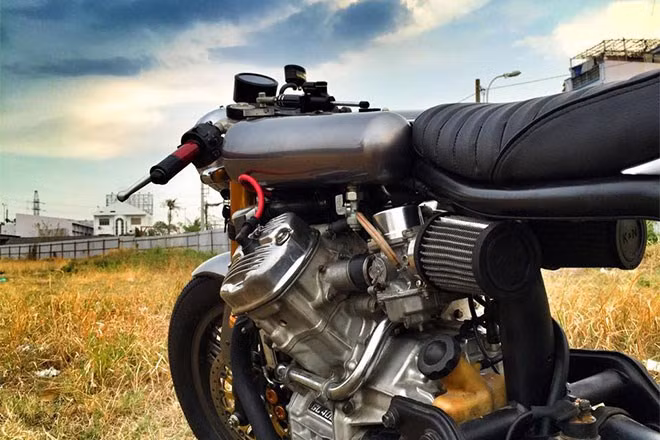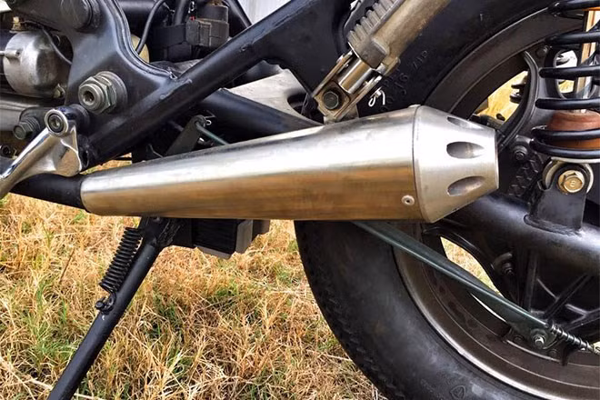 Ống xả gia công bằng tay với hình dáng thuôn gọn đặc trưng của dòng cafe racer.