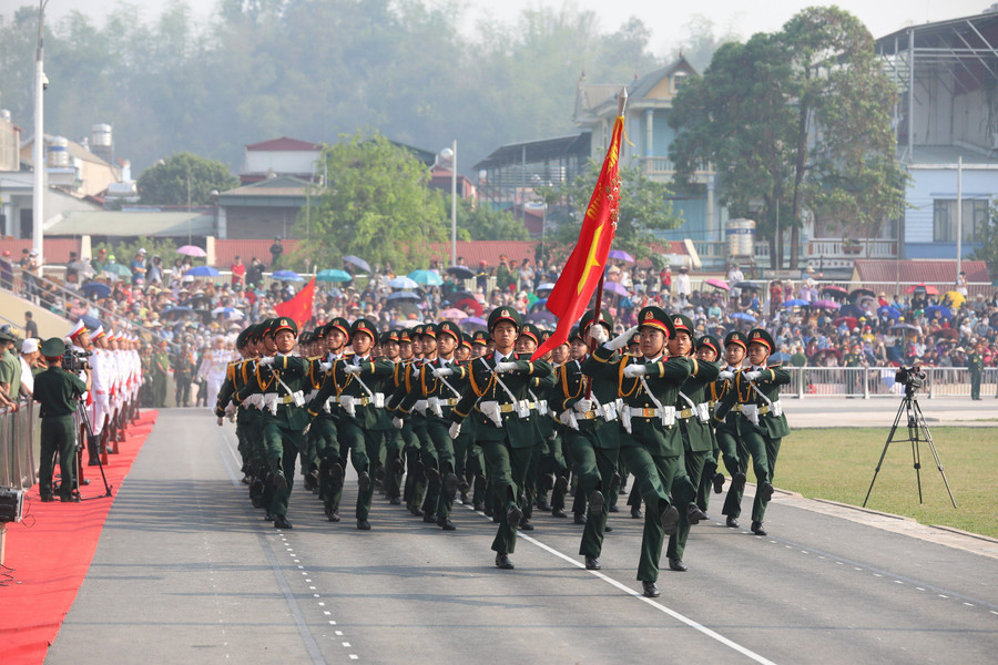 Động viên cán bộ các khối diễu binh, diễu hành sau buổi hợp luyện, Thượng tướng Nguyễn Tân Cương, Tổng Tham mưu trưởng Quân đội nhân dân Việt Nam, Thứ trưởng Bộ Quốc phòng đề nghị các khối khắc phục khó khăn, chia sẻ với tỉnh Điện Biên về điều kiện cơ sở vật chất. Thời tiết khắc nghiệt, nắng nóng kéo dài khiến công tác tập luyện trở nên vất vả.