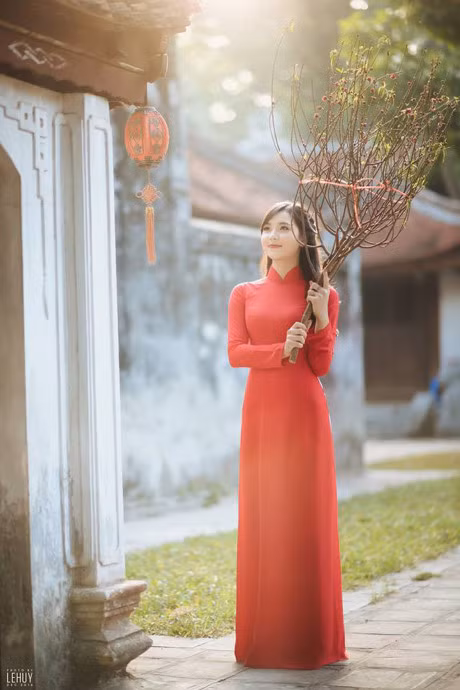 Trước bộ ảnh "Lên nương mùa xuân" với hình tượng thiếu nữ dân tộc xinh đẹp , trước đó Thu Hương cũng đã chụp một vài hình ảnh đón xuân với concept áo dài đỏ cùng tạo hình của một thiếu nữ Hà thành yêu kiều, giản dị. Những bức ảnh nhìn chung khá đơn giản nhưng vẫn mô tả được sức sống mùa xuân mãnh liệt, tạo ra cảm xúc đặc biệt cho người xem thời điểm Tết đến. Ảnh: Lê Huy.