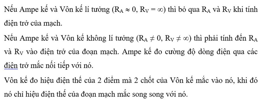 Nếu trong mạch điện có Vôn kế và Ampe kế thì phải chú ý: