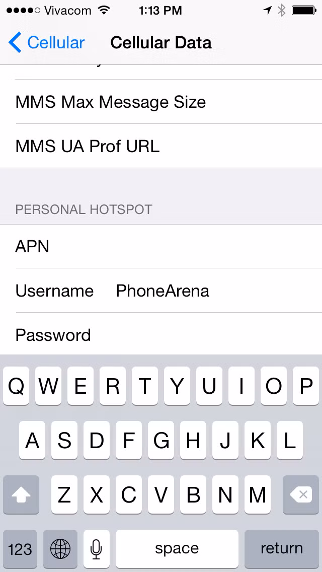 Bước 4: Cuộn xuống khu vực Personal Hotspot, nhập tên và mật khẩu theo ý muốn rồi quay lại trang trước