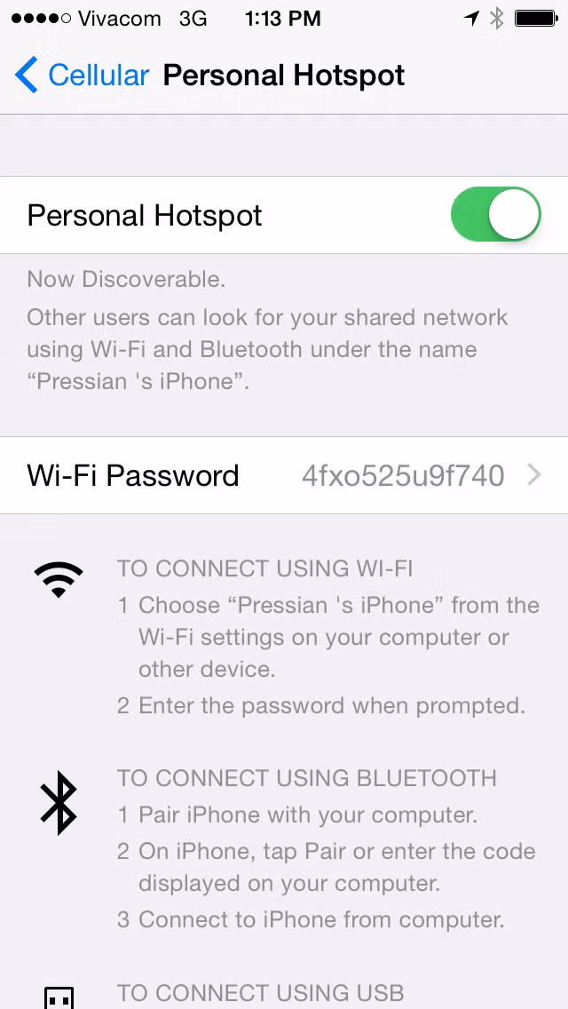 Bước 7: Giao diện khi bật Personal Hotspot trong iOS 8