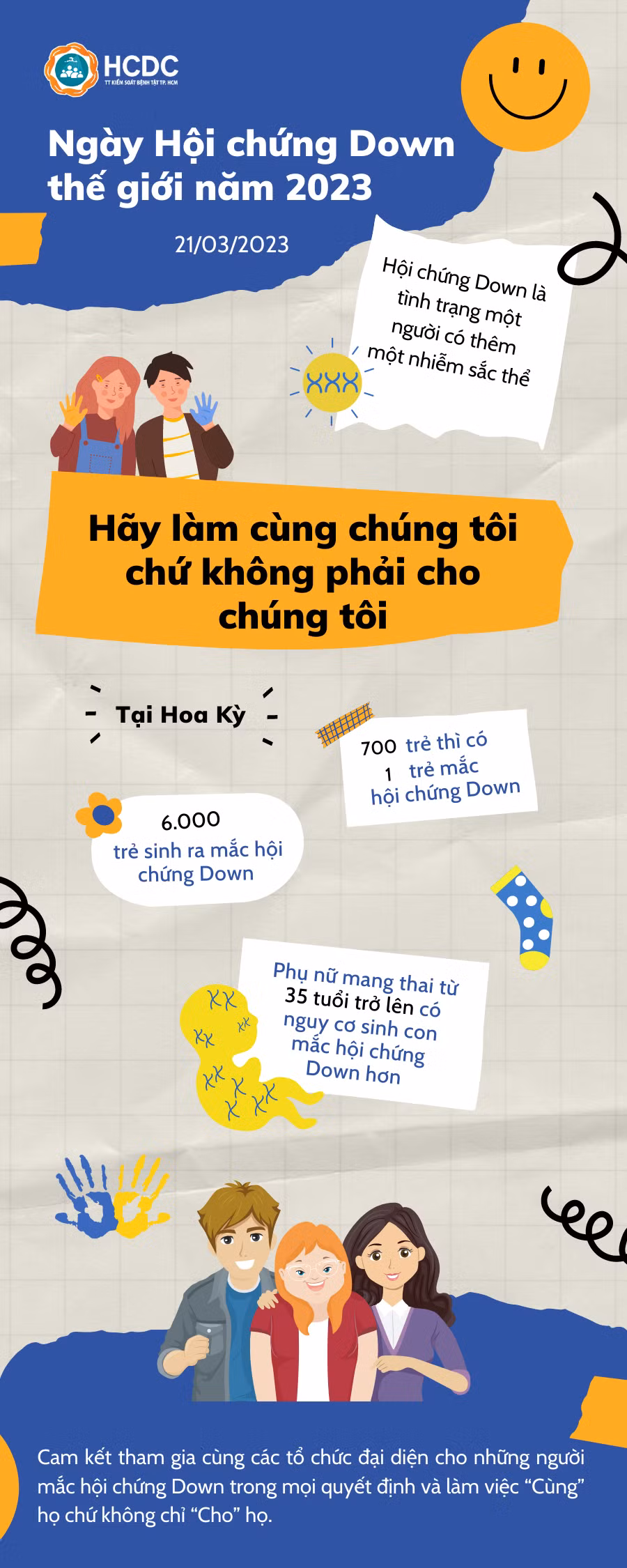 Chủ đề của Ngày Hội chứng Down thế giới năm nay là "Hãy làm cùng chúng tôi chứ không phải cho chúng tôi". Thông điệp này là chìa khóa cho cách tiếp cận người khuyết tật dựa trên quyền con người.