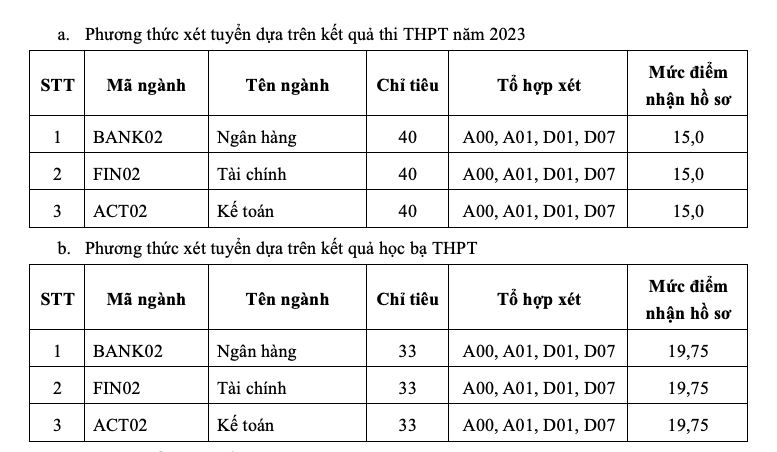 Năm 2023 Học viện Ngân hàng xét tuyển bổ sung hệ đại học chính quy tại Phú Yên với 219 chỉ tiêu theo 2 phương thức: Xét tuyển dựa trên kết quả thi THPT năm 2023 và Xét tuyển dựa trên kết quả học bạ THPT.