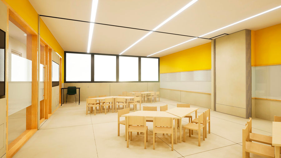 Đặc biệt, ánh sáng tự nhiên luôn được ưu tiên trong thiết kế trường học với các khung cửa kính, tấm film cách nhiệt và tia UV để bảo vệ sức khỏe cho học sinh. Bên cạnh hệ thống chiếu sáng, ILA còn sử dụng loại chất liệu sơn tường có thể dễ dàng tẩy xóa các vết bẩn, sàn nhà chống trượt, bảng viết 360 độ hỗ trợ sáng tạo…