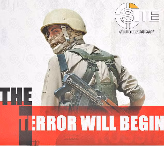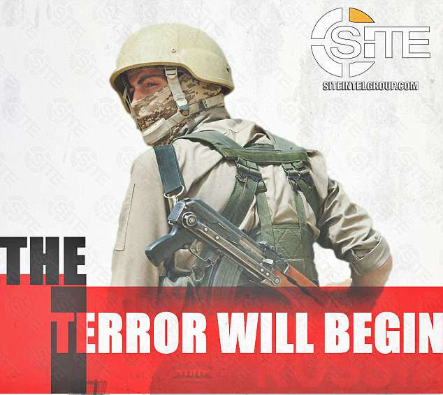 Hình ảnh thứ 3 thể hiện một chiến binh có vũ trang với dòng chữ “khủng bố sẽ bắt đầu” và hình thứ 4 thể hiện một video clip đánh bom sự kiện Marathon ở Boston, Mỹ năm 2013 để kêu gọi cuộc tấn công vào trận đấu bóng đá – Theo nhóm tình báo SITE chuyên theo dõi các hoạt động khủng bố.