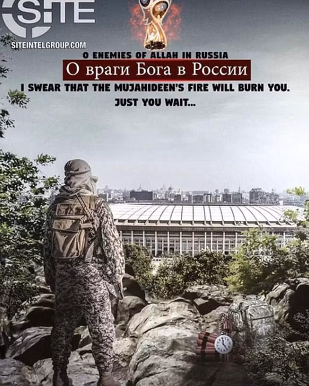 Những lời kêu gọi khác về các cuộc tấn công thánh chiến nhằm “giết hết tất cả” với những câu viết bằng tiếng Pháp cùng với một bức tranh có con dao đang cắt qua một logo vòng đấu tại một sân vận động khác ở Nga.