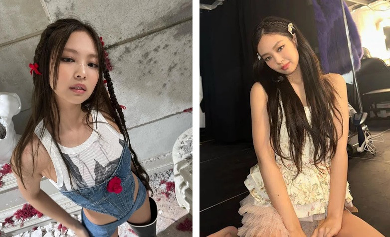 | Jennie kết hợp sáng tạo ruy băng vào nhiều kiểu trang phục khác nhau. |