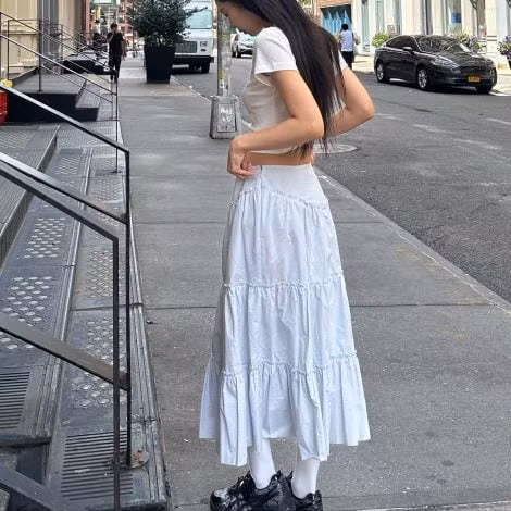 Jennie (BLACKPINK) diện áo phông xanh baby khoác ngoài kết hợp cùng chân váy maxi, nữ ca sĩ “You&Me” khoe vẻ nữ tính đầy ngọt ngào.