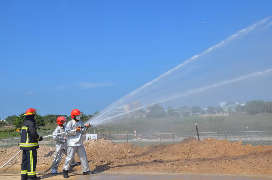 Ngay sau khi phát hiện sự cố, lực lượng vận hành và chữa cháy tại hiện trường đã nhanh chóng triển khai đội hình chữa cháy, phun tia nước đặc khống chế đám cháy và nước phân tán làm mát, bảo vệ ống công nghệ để làm giảm nhiệt độ vùng cháy, đồng thời cách ly chất cháy và nguồn nhiệt. Lực lượng phối hợp cũng nhanh chóng xử lý công nghệ, cô lập làm giảm áp suất đường ống khí để hạn chế mức thấp nhất sự rò rỉ khí, condensate ra môi trường. Tất cả các lăng chữa cháy được bố trí tập trung vào điểm rò rỉ khí cháy cho đến khi dập tắt hoàn toàn đám cháy.