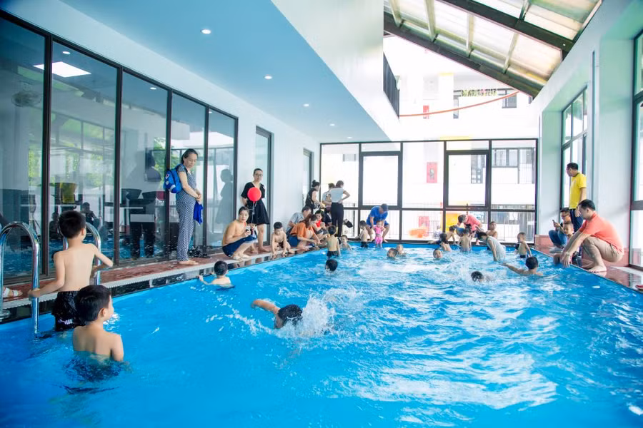 | Thiết kế của trường bao gồm 3 tòa nhà nối tiếp nhau, 34 lớp học cùng hệ thống phòng thực hành, phòng năng khiếu, phòng học STEM, nhà hát, bể bơi 4 mùa, phòng tập Taekwondo, nhà ăn tự chọn phong cách Á-Âu, khu vận động trong nhà và ngoài trời, sân bóng đá mini, vườn thủy sinh… đảm bảo về công năng học tập, đào tạo và vui chơi. |