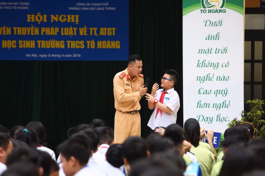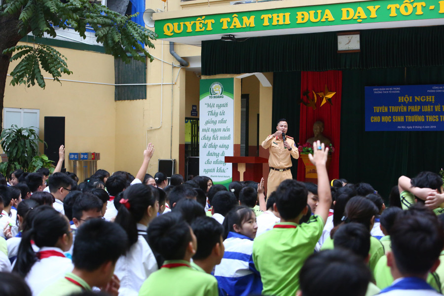 Sôi nổi trả lời các câu hỏi mà báo cáo viên nêu ra, các học sinh khối 6 và 7 Trường THCS Tô Hoàng đã nhận thức rõ những vấn đề tồn tại hiện nay như tình trạng ùn tắc giao thông vào giờ cao điểm; tai nạn giao thông diễn biến phức tạp; nhiều người tham gia giao thông chưa đội mũ bảo hiểm hay tuân thủ các quy định về tín hiệu đèn giao thông.