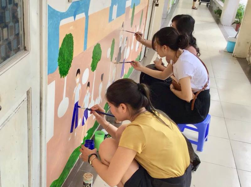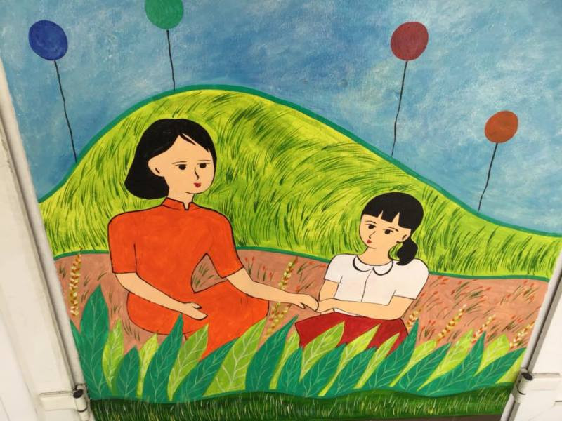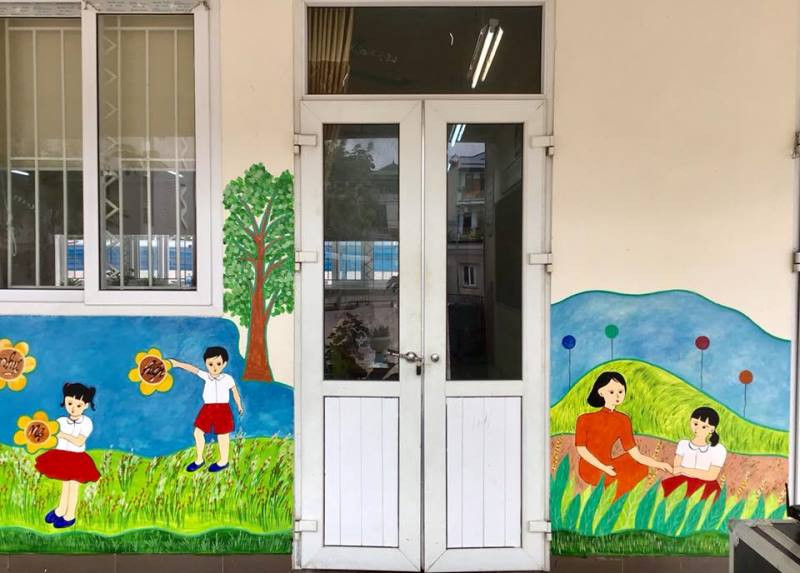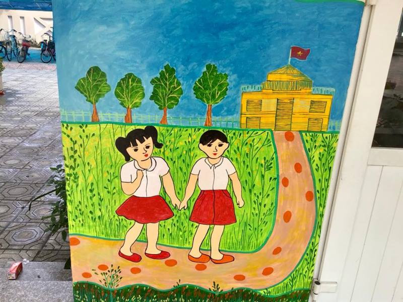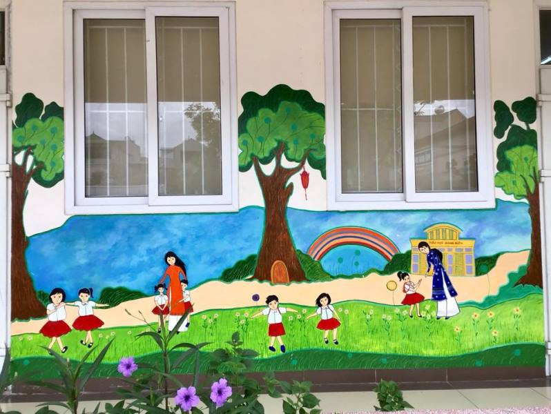 Được biết, để có được những bức bích họa rực rỡ truyền tải những thông điệp yêu thương đến học sinh thân yêu, các cô giáo đã tranh thủ thời gian, "trổ" hết tài họa sĩ, miệt mài sáng tạo vẽ nên những bức tranh tường rực rỡ để ngày khai giảng thêm sinh động.