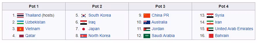 Bảng A: Bahrain, Australia, Iraq, Thái Lan