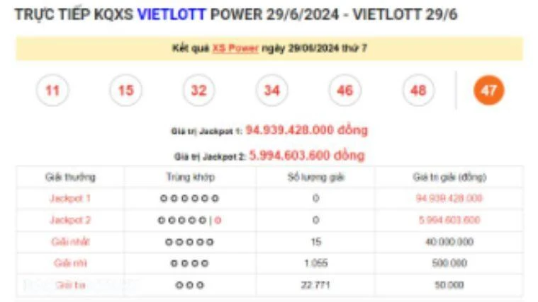 Vietlott 2/7 - Xổ số Power 6/55 25/6 - Vietlott Power 2/7 - Kết quả xổ số Vietlott thứ Ba ngày 2/7/2024