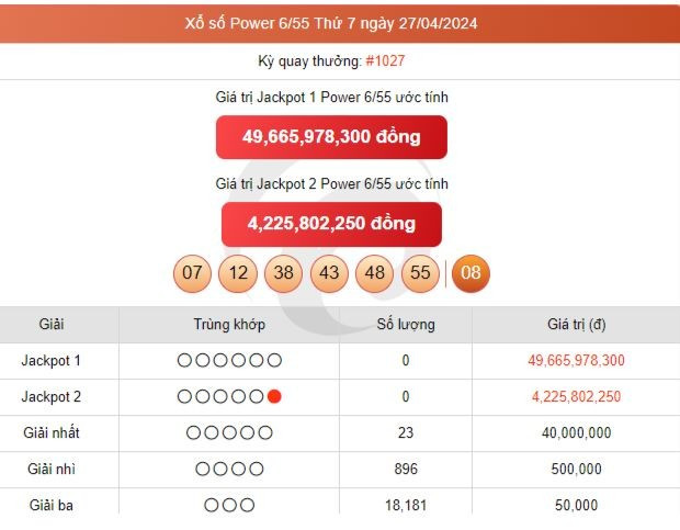 Xem kết quả xổ số Vietlott Power 6/55 30/4, theo dõi KQXS Vietlott mới nhất trên Báo Giáo dục và Thời đại để không bỏ lỡ thời gian nhận thưởng.
