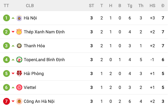 Mất điểm đáng tiếc khiến Thép Xanh Nam Định không thể đòi lại được ngôi đầu từ Hà Nội FC. Khép lại vòng 3, cả đôi bên cùng có 7 điểm nhưng đội bóng Thủ đô hơn về hiệu số.