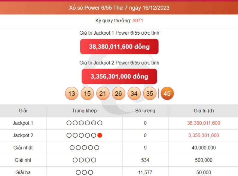Kết quả xổ số Vietlott thứ Bảy ngày 16/12