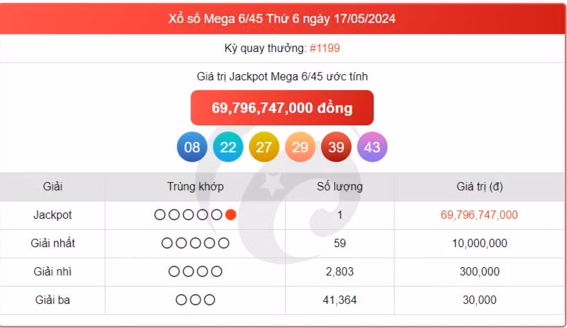 Xổ số Mega 6/45 hôm nay - Vietlott 19/5 - Trực tiếp kết quả xổ số Vietlott Mega 6/45 Chủ Nhật ngày 19/5/2024