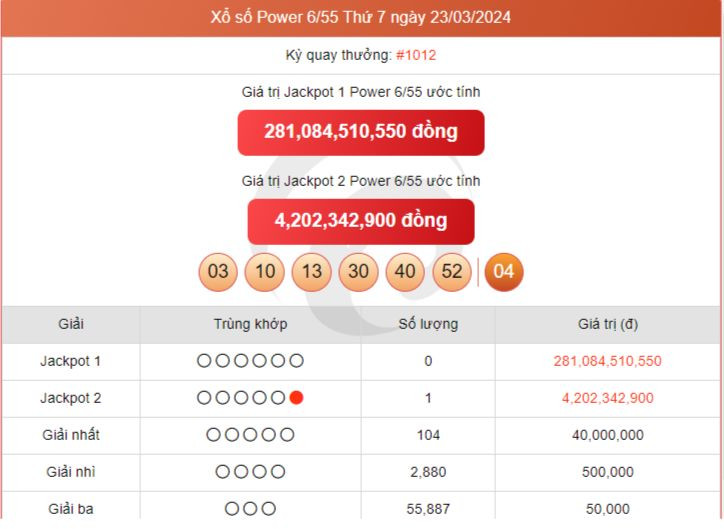 Kết quả xổ số Vietlott ngày 21/3/2024