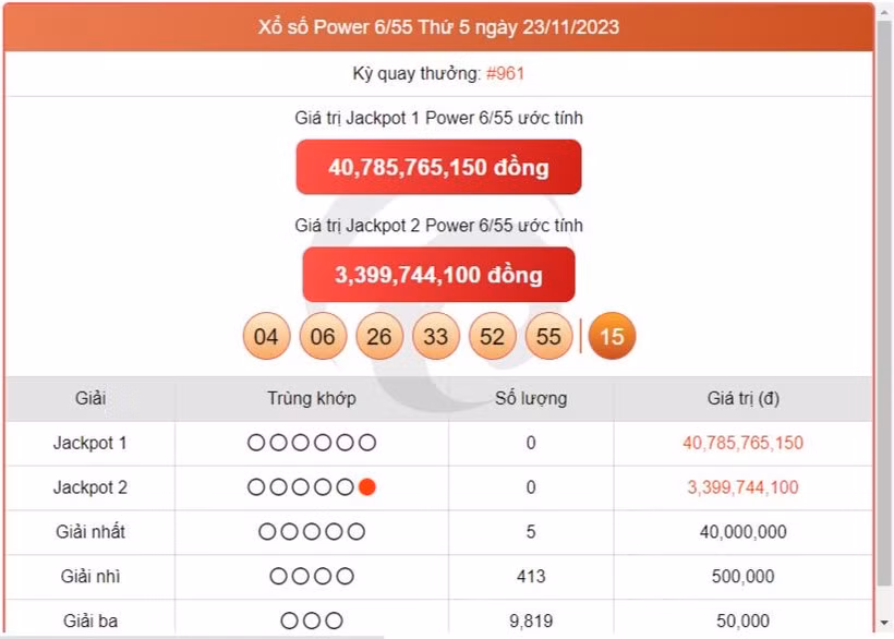 Kết quả xổ số Vietlott thứ Năm ngày 23/11/2023