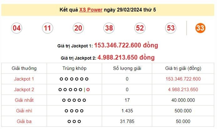 Kết quả xổ số Vietlott ngày 29/2/2024