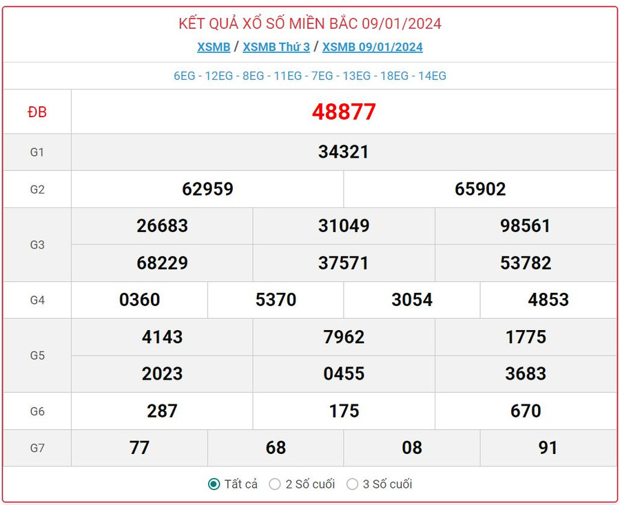 Kết quả xổ số miền Bắc hôm nay sẽ cập nhật cập nhật liên tục từ giải Bảy đến giải Đặc biệt.
