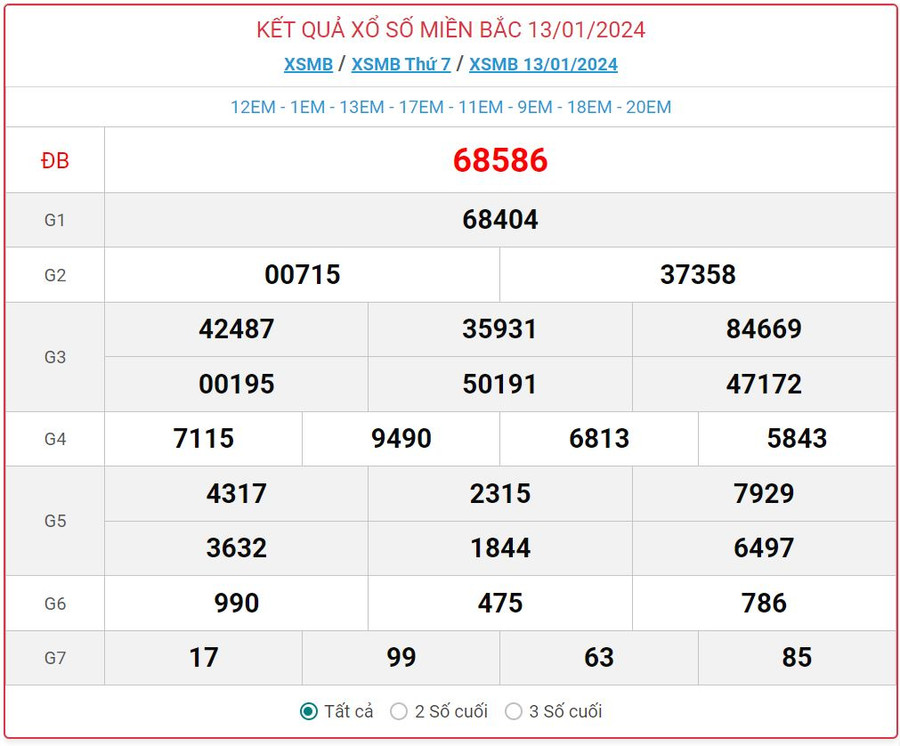 Kết quả xổ số miền Bắc hôm nay sẽ cập nhật cập nhật liên tục từ giải Bảy đến giải Đặc biệt.