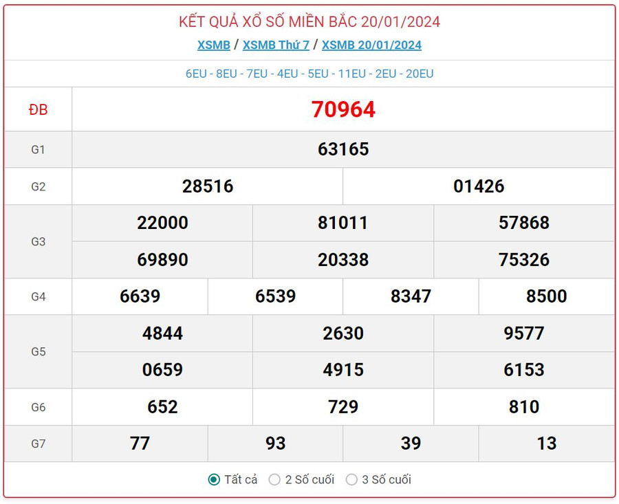 Kết quả xổ số miền Bắc hôm nay sẽ cập nhật cập nhật liên tục từ giải Bảy đến giải Đặc biệt.