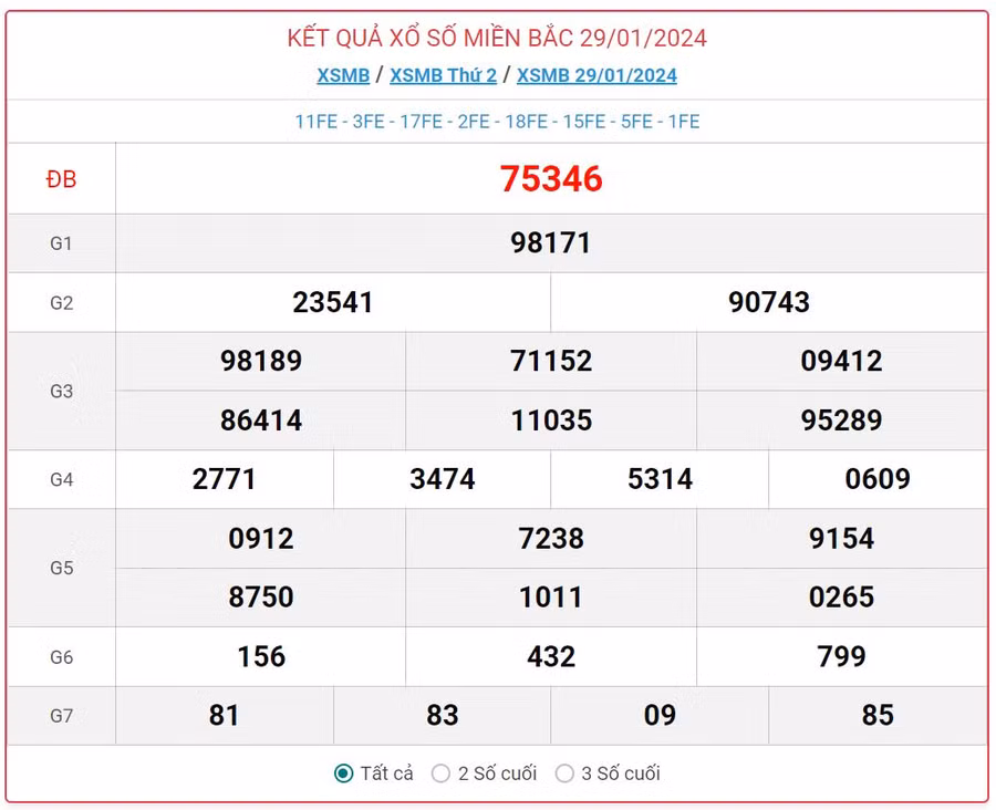 Kết quả xổ số miền Bắc hôm nay sẽ cập nhật cập nhật liên tục từ giải Bảy đến giải Đặc biệt.