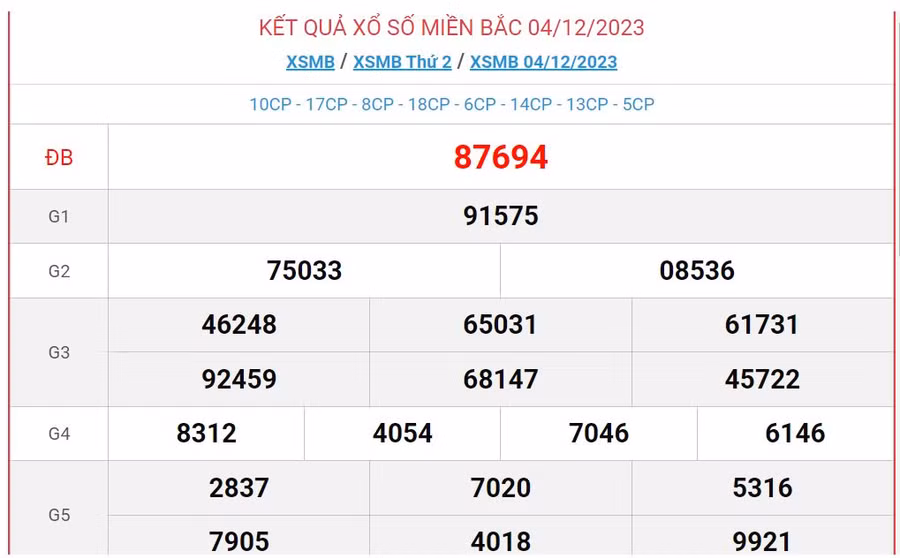Trực tiếp kết quả XSMB hôm nay 5/12 - XSMB 5/12 - Xổ số miền Bắc thứ Ba 5/12/2023 - KQXS miền Bắc hôm nay 5/12