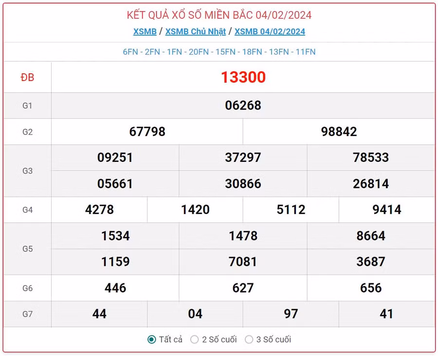Trực tiếp kết quả xổ số miền Bắc hôm nay - XSMB ngày 5/2 trên Báo Giáo dục và Thời đại online nhanh và chính xác.