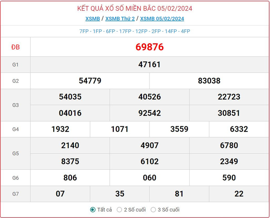 Trực tiếp kết quả xổ số miền Bắc hôm nay - XSMB ngày 6/2 trên Báo Giáo dục và Thời đại online nhanh và chính xác.