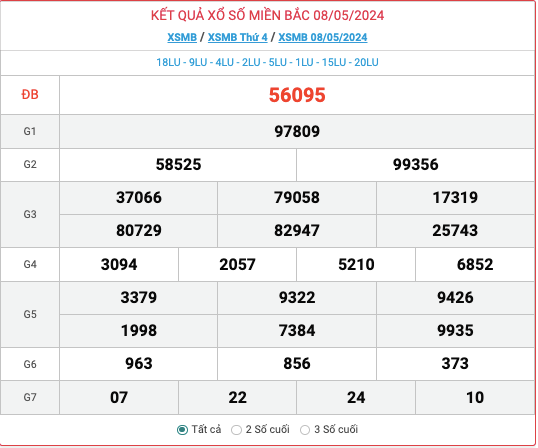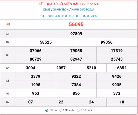 Kết quả xổ số miền Bắc ngày 8/5. KQXSMB 8/5/2024. XSMB 8/5.