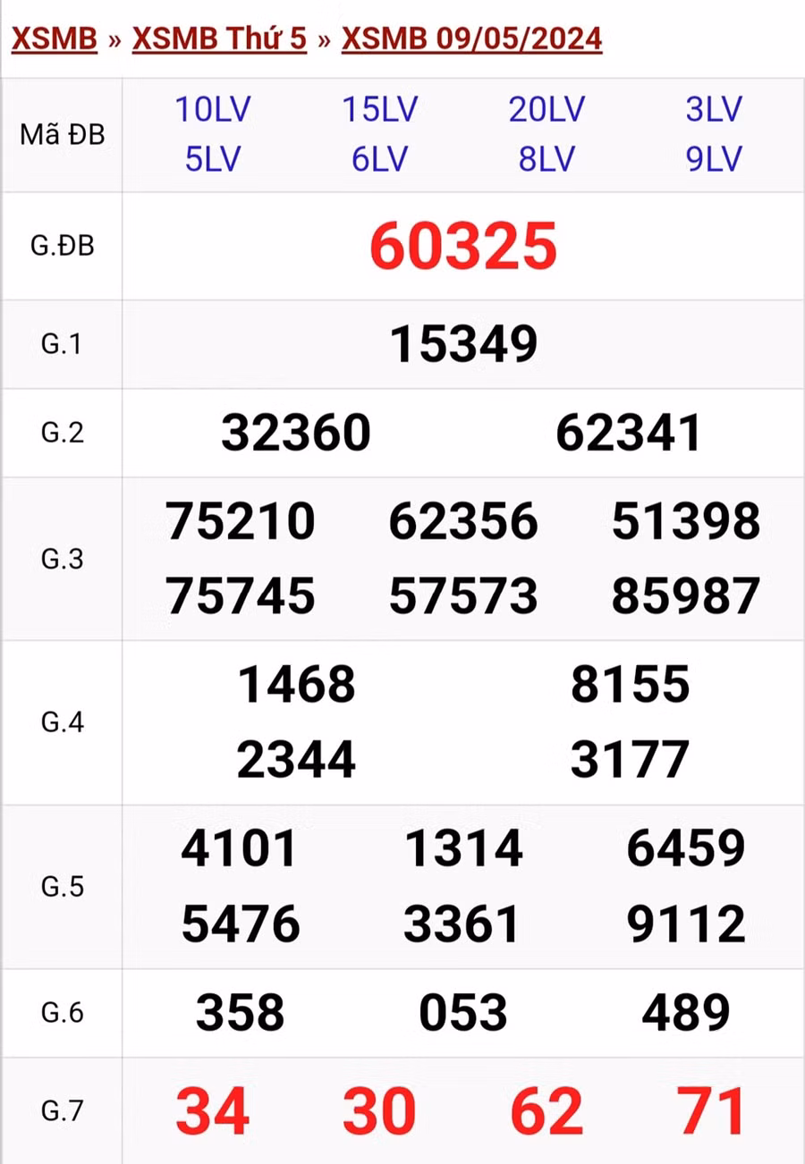 Kết quả xổ số miền Bắc ngày 9/5. KQXSMB 9/5/2024. XSMB 9/5.