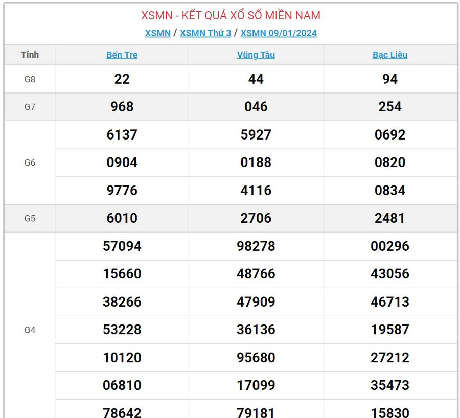 - Thứ 3 tuần này có 3 đài Bến Tre, Vũng Tàu, Bạc Liêu