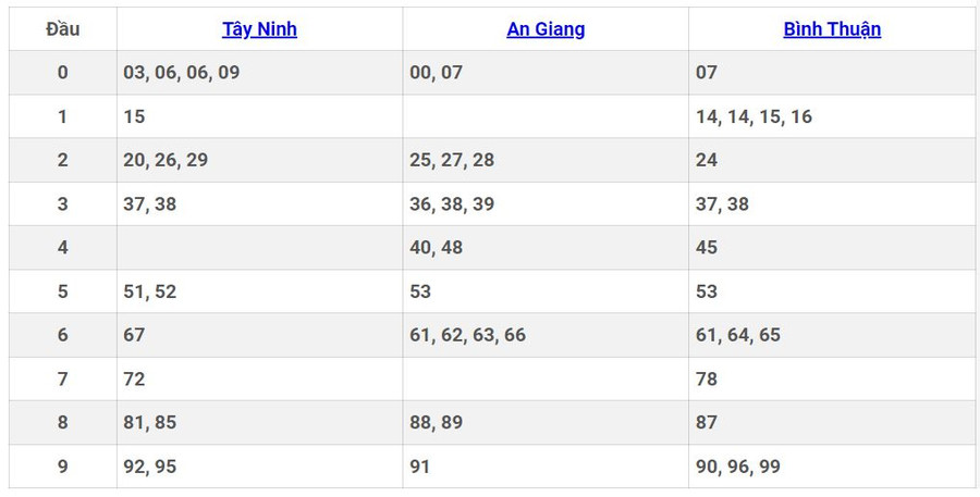 - Thứ 5 do 3 đài Tây Ninh, An Giang, Bình Thuận