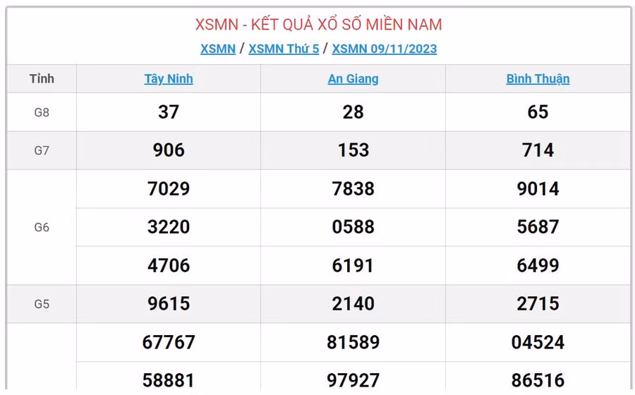 Cập nhật kết quả XSMN các ngày quay thưởng gần nhất